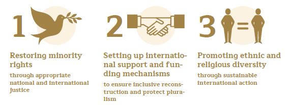 These various national and international instruments could also be supported by various United Nations agencies and European Union. Far from promoting communitarianism, these initiatives would support political transition and anchor these minorities within the societies in which they live, thereby ensuring stability in these countries while strengthening respect for human rights for all.